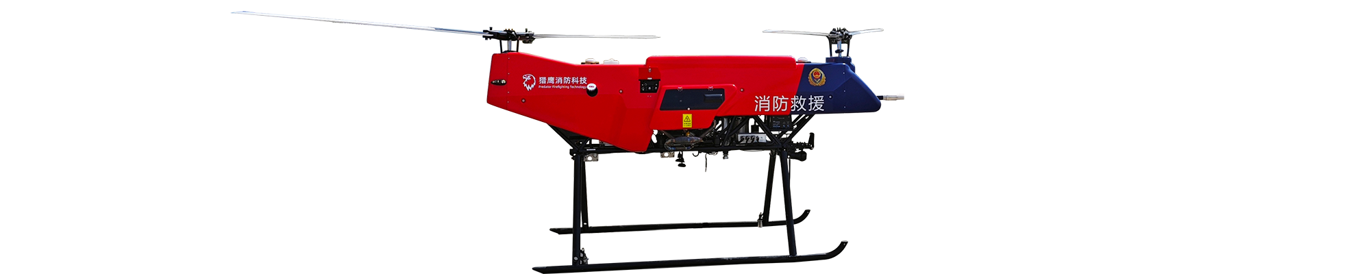 基于油動、電動、油電混合動力模式和大、中、小載重量的“鵬”、“鷹”、”雕”、“隼”、“鷂”五款消防無人機